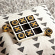 Turn a classic children`s game into a bold art piece with this tic-tac-toe bone , resin and iron sculpture piece. Bring a dose of character and entertain friends and family in the same moment with this fully functional game of X`s and O`s. Dimensions: H 1.25 x W 8.25...